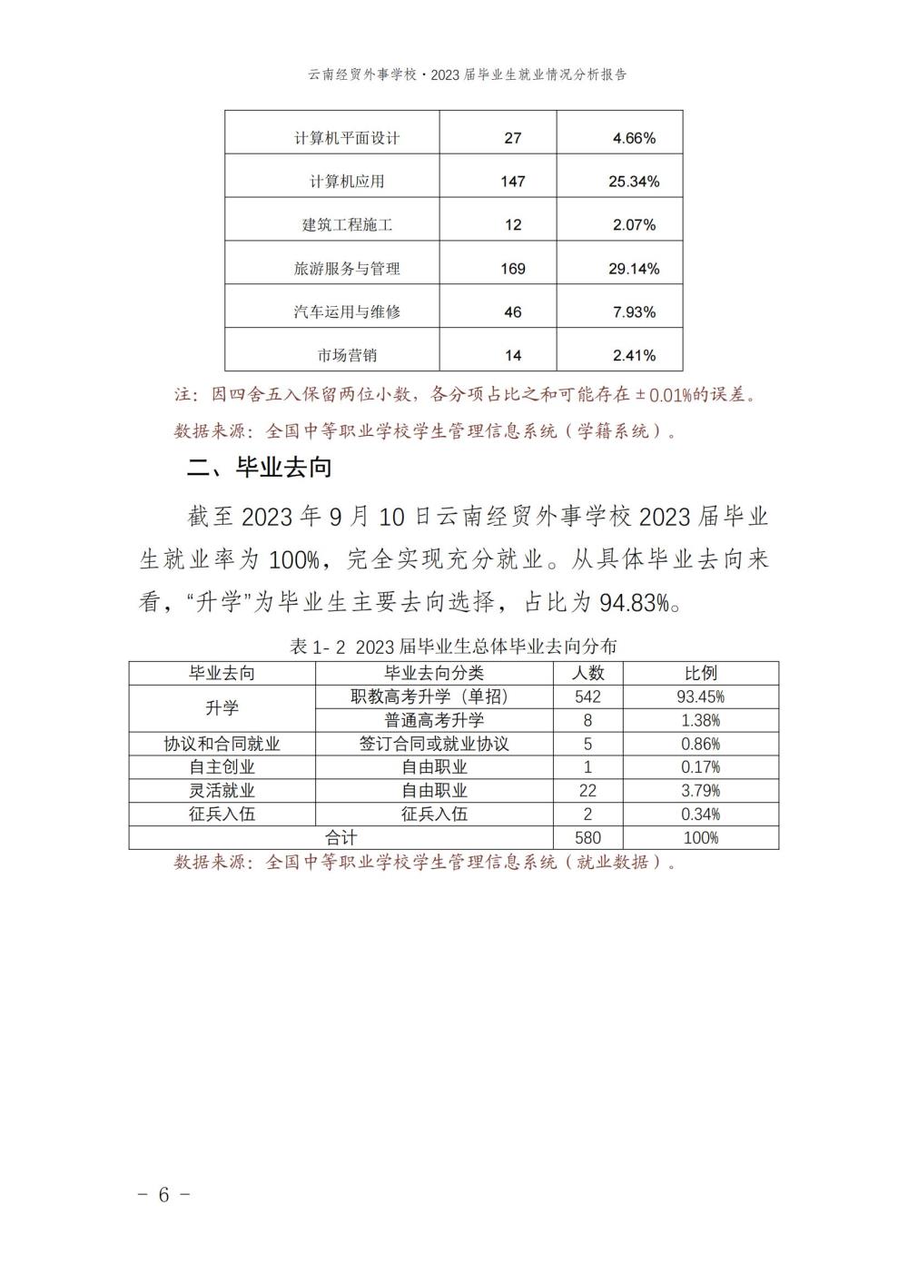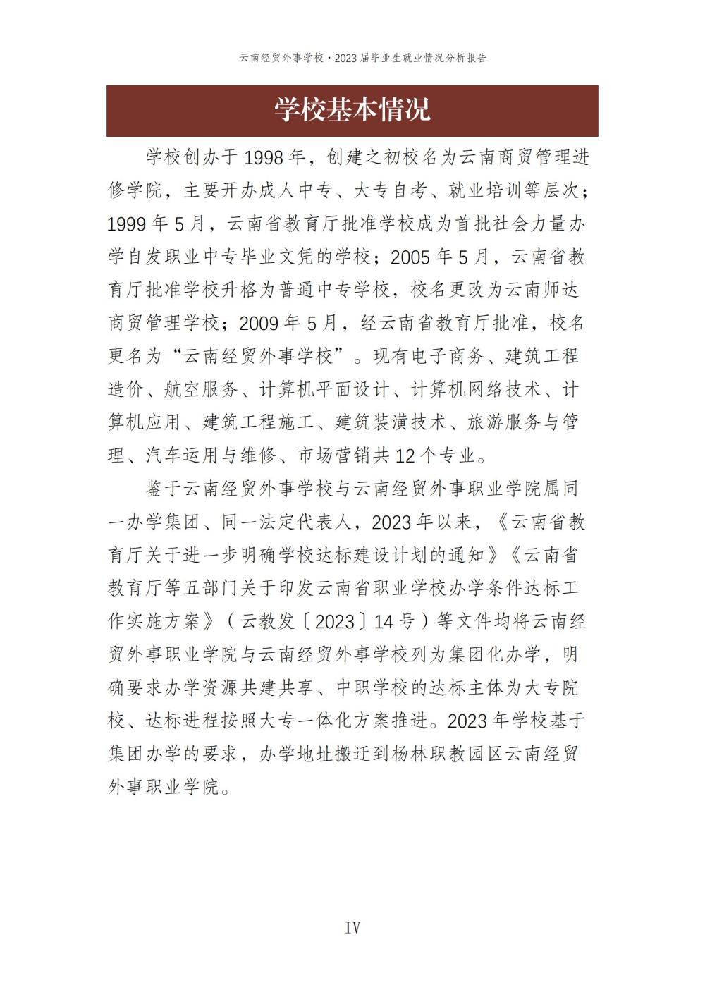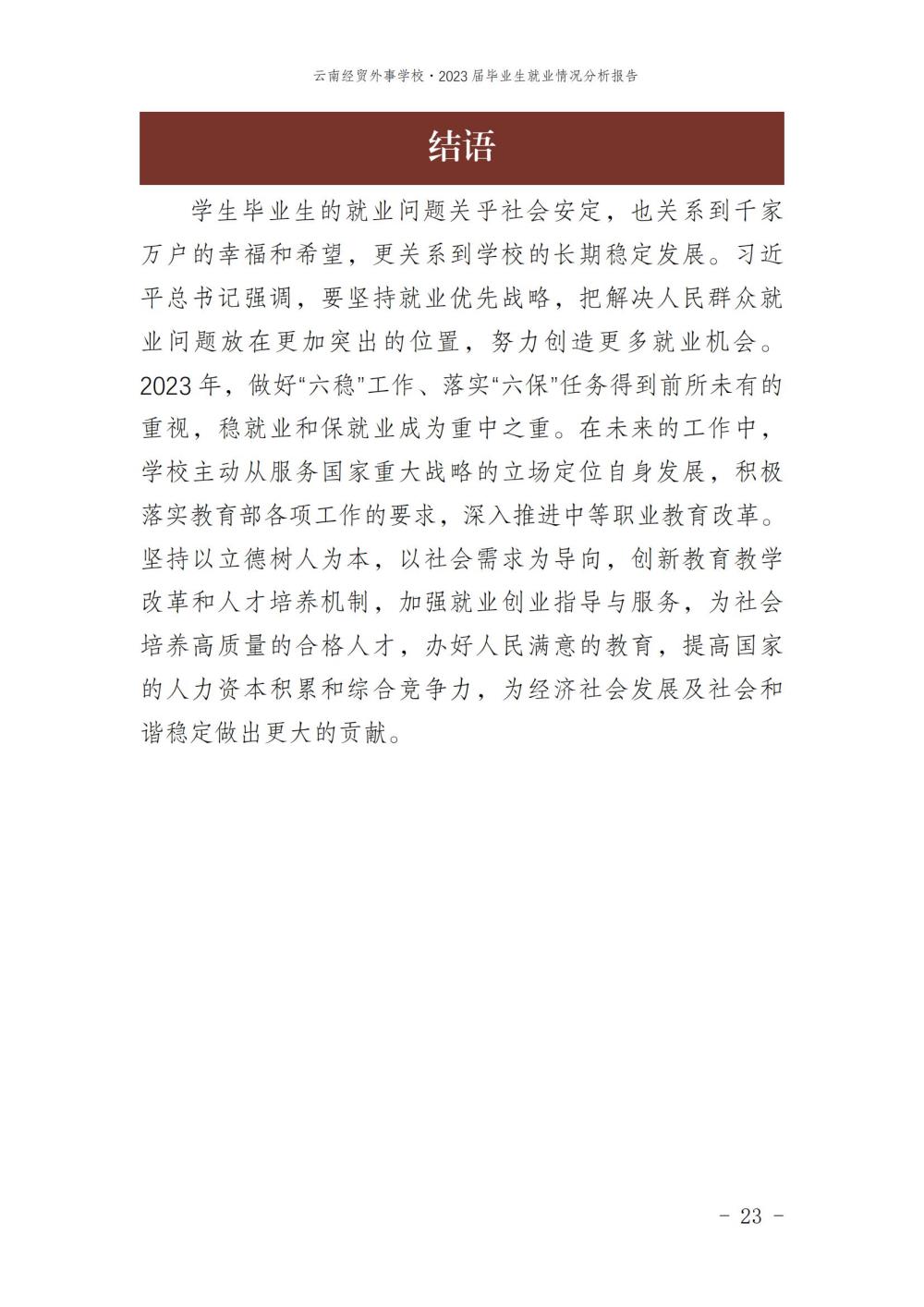 云南经贸外事学校2023届毕业生就业质量年度报告