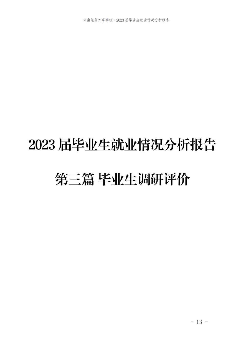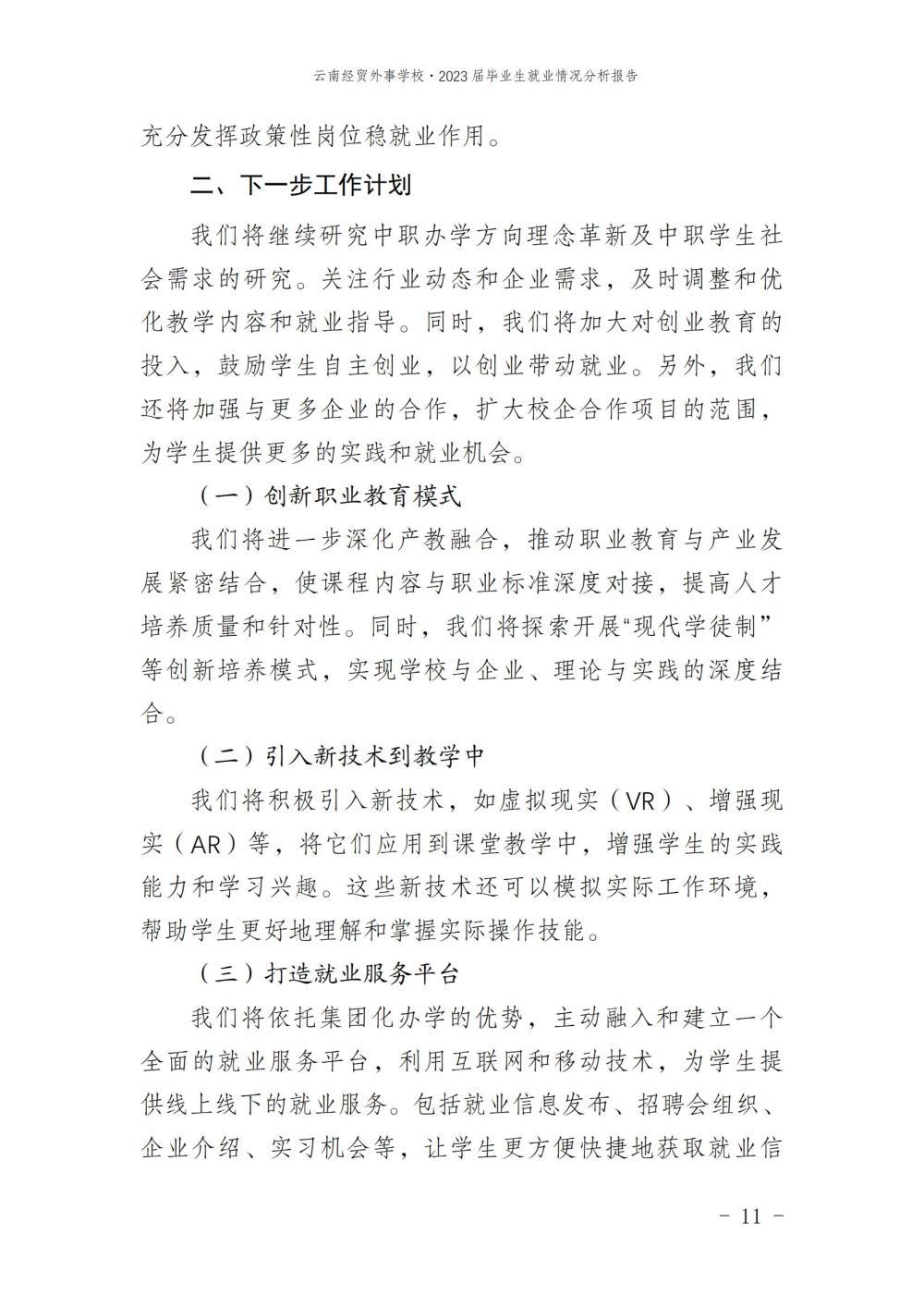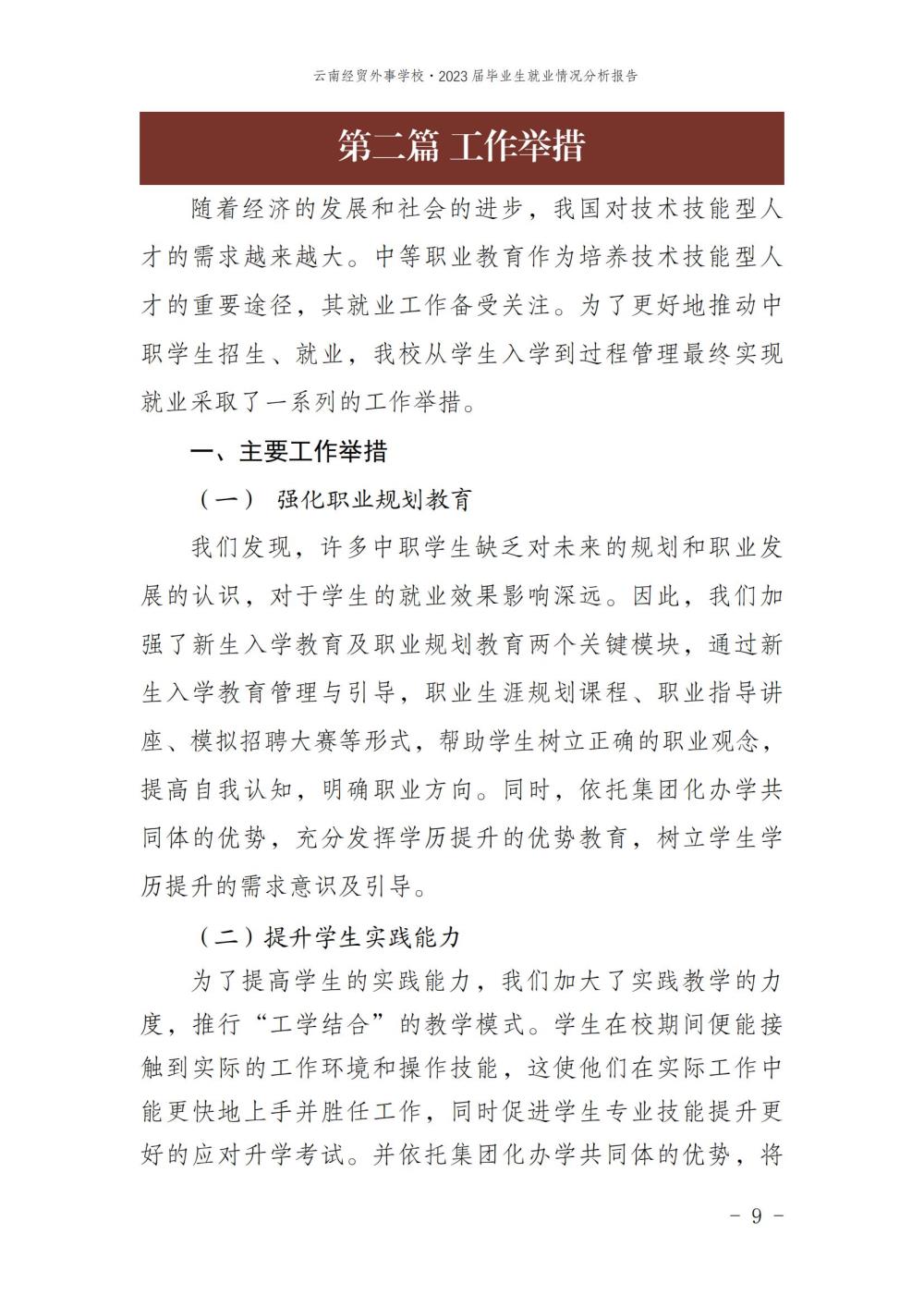 云南经贸外事学校2023届毕业生就业质量年度报告